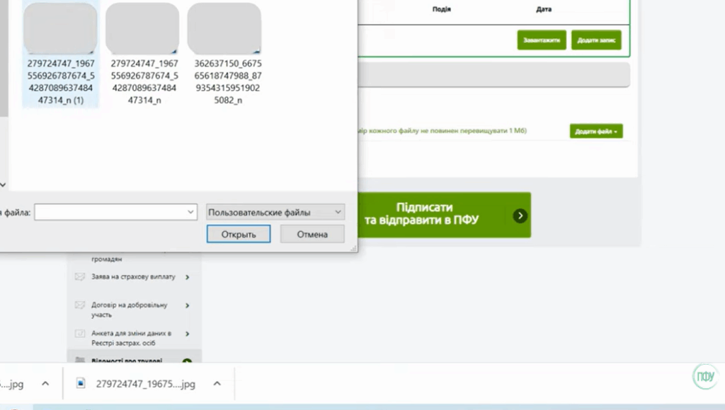 - Підписання та відправлення: Натисніть кнопку «Підписати та відправити в ПФУ», завіривши звернення своїм електронним підписом.
