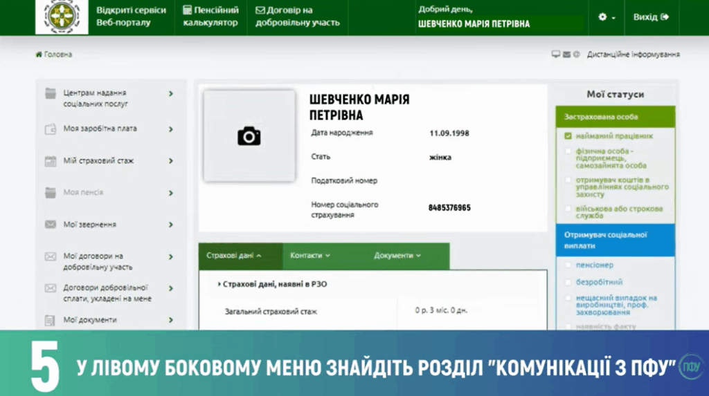 - У лівому меню оберіть розділ «Комунікації з ПФУ».