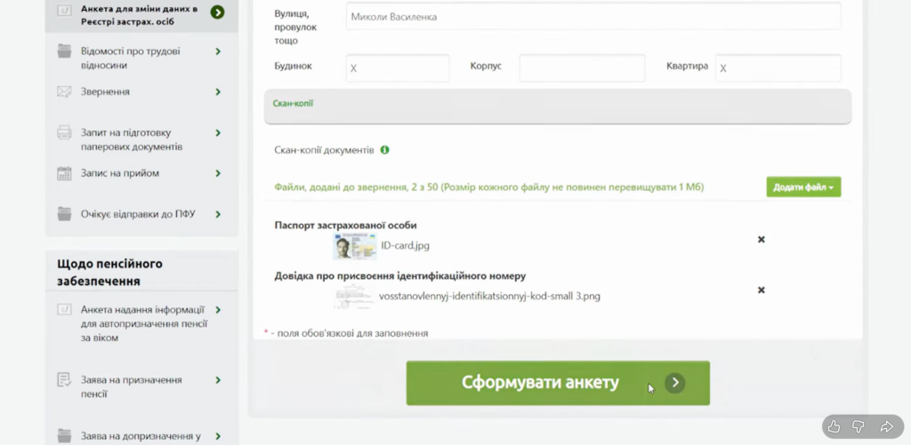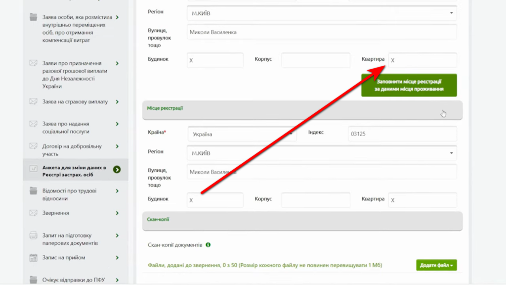 - Завантажте документи: Додайте скановані копії документів (паспорт, довідка про реєстрацію тощо).
